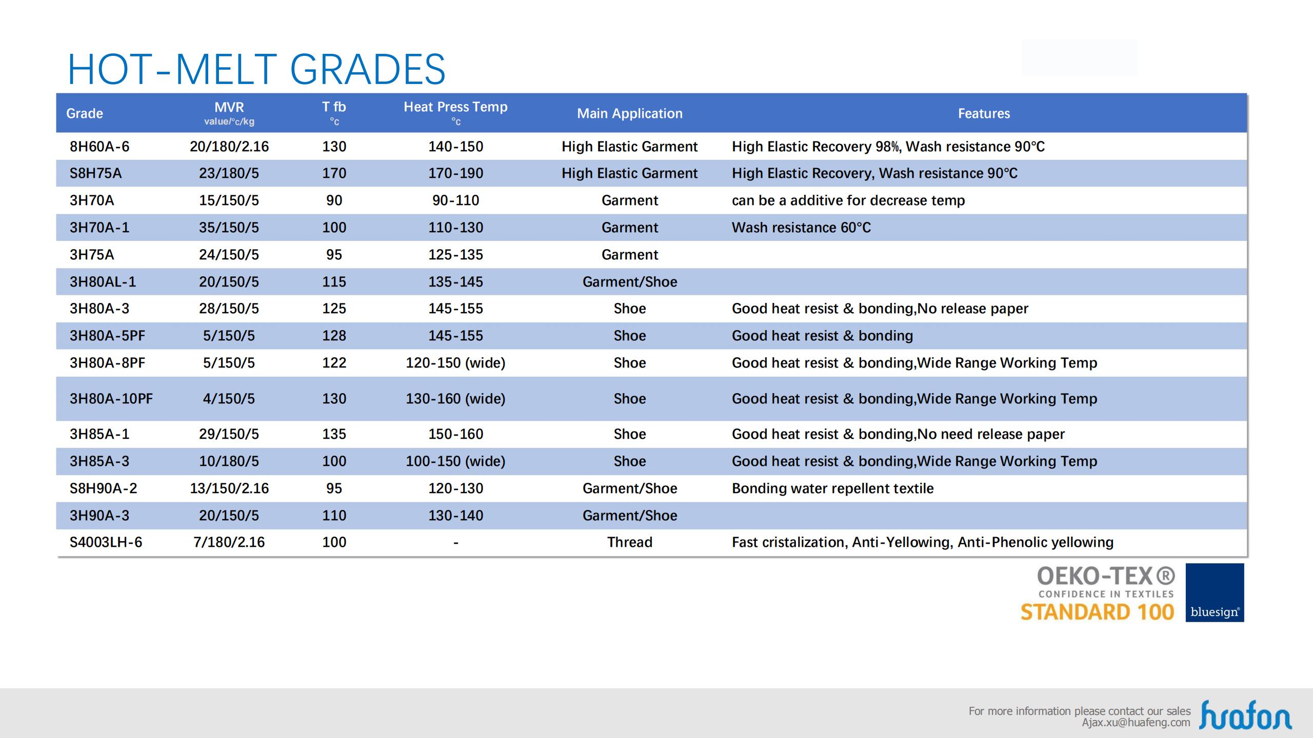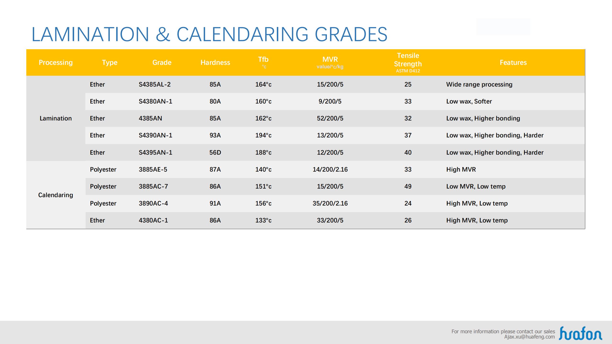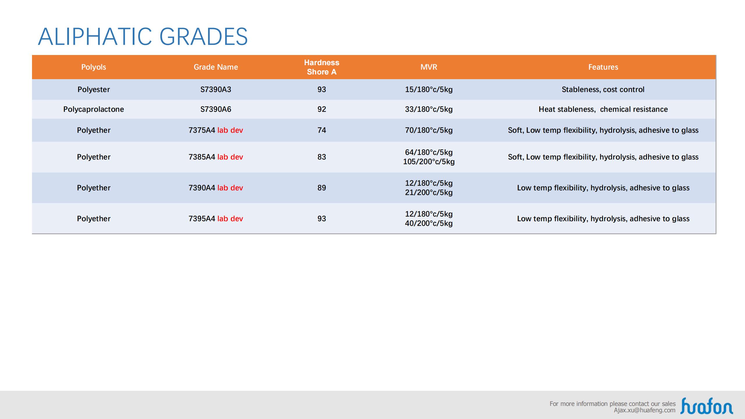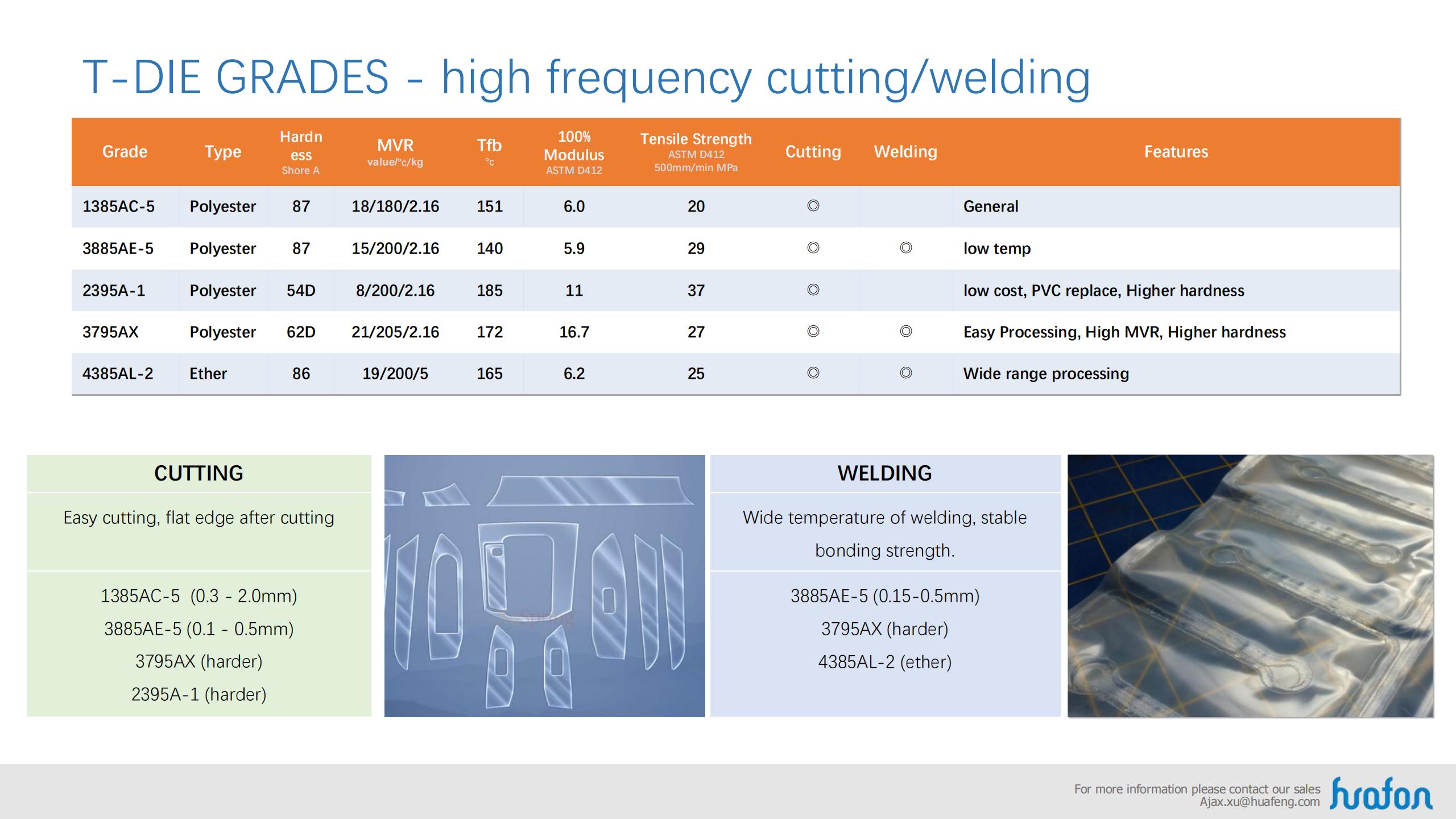 Base on the property of aliphatic series and aromatic series, Huafon TPU can satisfy the consume and industry filed, as well as different requirement and different equipment.