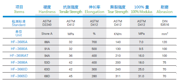 Huafon 36 series products have Excellent Physical/Mechnical properties and Environmental protection, Great Transparency. It’s mainly used in (Transparent) Footwear, Accessories, Machinery accessories.